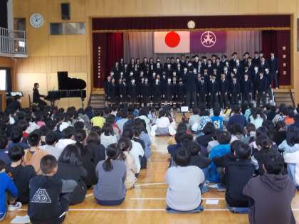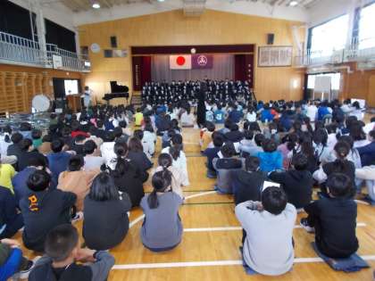 駒留中学校3年生と旭小3〜6年生による合唱交流会を13時45分から体育館にて開催しました。