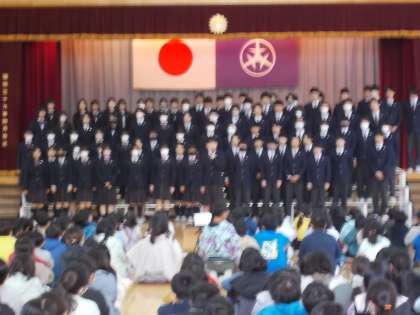 まず駒留中学校についての数々の紹介と合唱を聴きました。