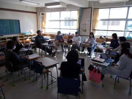 校内研究会(4月10日) 公開日 2024/04/10 更新日 2024/04/10 今日のできごと 児童下校後、全教員で校内研究会をもちました。 写真は全体会後の分科会の様子です。 今年度は国語、算数、体育の3分科会を設定し、各々の分科会で旭の子どもたちに身に付けさせたい力をどのように授業を通して身に付けさせればよいか等、話し合いを進めました。