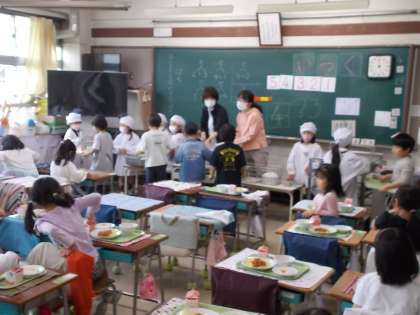 1年給食準備(4月23日)