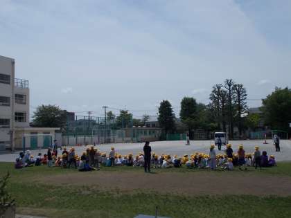 1年生が3校時に交通安全について実地で学びました。