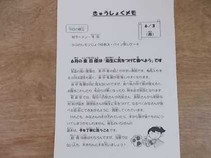 献立は、旭ラーメン、牛乳、蕪のレモン醤油あえ、パイン蒸しケーキでした。
