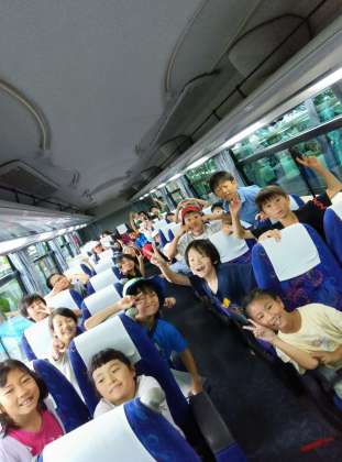 3年社会科見学(6月25日 公開日 2024/06/25 更新日 2024/06/25 今日のできごと 浄真寺を後にしました。 バスで移動中です。 車窓から見える道路、鉄道、商店などから、地図にまとめたことを思い出しています。 写真は2号車(2組)です。