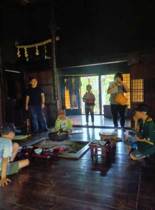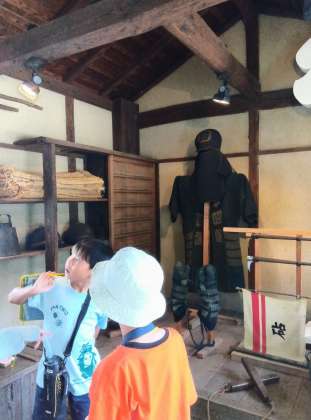 クラスごとに活動しています。3組は、最初に班ごと見学しています。民家に入り囲炉裏にあたったり、消防設備や道具などを見たりしました。綿から糸を作る様子に見入る子もいました。