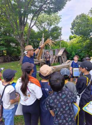3年社会科見学(6月25日 公開日 2024/06/25 更新日 2024/06/25 今日のできごと 続いて藁体験です。 わらでいろんなものが作られていますね。 わらじを履いてみました。気持ちいいと好評です。