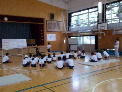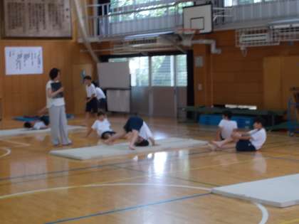 授業の様子(7月3日) 公開日 2024/07/03 更新日 2024/07/03 今日のできごと 5年2組の4校時(体育)の様子です。 単元名「マット運動」 本時の目標「自分のめあて達成に向け、場を選び、友達と助言し合いながら、運動(回転系後転グループ)に取り組むことができる。