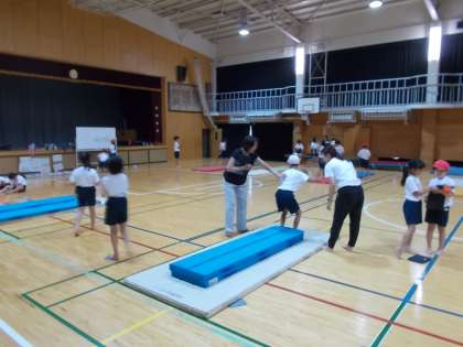 授業の様子(7月8日) 公開日 2024/07/08 更新日 2024/07/08 今日のできごと 3年1組の2校時(体育)の様子です。 単元名「マット運動」 本時の目標「基本的な技のポイントを理解し、めあての達成に向け練習方法や場を選び、楽しみながら運動に取り組むことができる。」