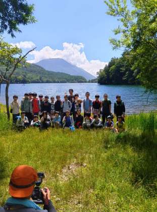 男体山をバックに、集合写真です。こちら、1組。