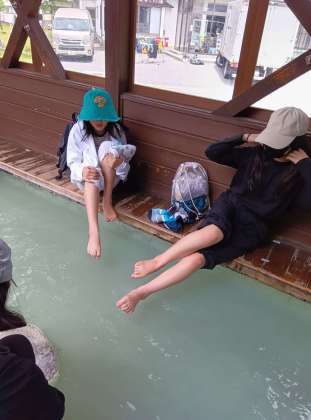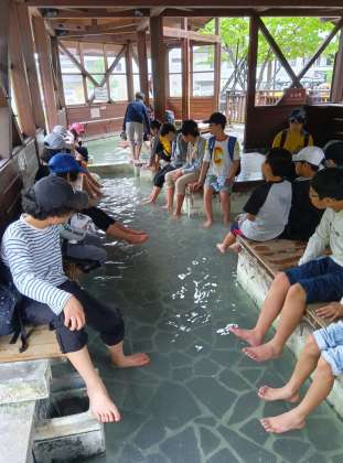 こちらは2組、足湯です。熱い熱いと言いながら、楽しそうです。