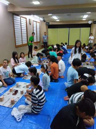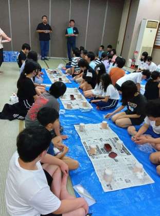 益子焼体験です。お話をせずに、真剣に取り組むよう説明がありました。