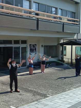 楽しい時間を過ごした春茂登とお別れです。宿舎の皆さんがお見送りをしてくださいました。