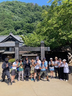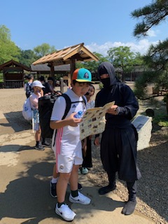 江戸村に詳しい忍者に道案内してもらってます。忍者ポーズを教わりみんなでハイポーズ!