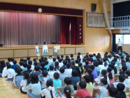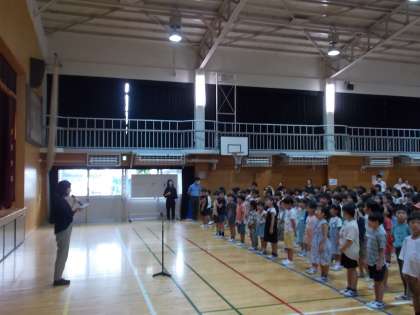 2学期始業式(9月2日) 公開日 2024/09/02 更新日 2024/09/02 今日のできごと 校長より、めあてをもち取り組み振り返りを行うこと、挨拶を引き続きしっかり行うことを児童に伝えました。 児童代表の言葉は2年生が受けもちました。 その後、転入児童の紹介と看護当番の話(生活リズムを整えること、水筒の中身について(「学校だより9月号」参照)をして終わりました。
