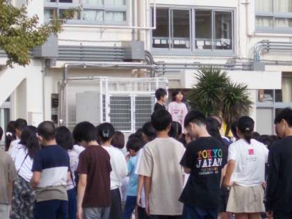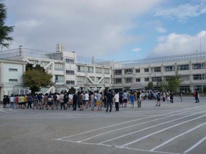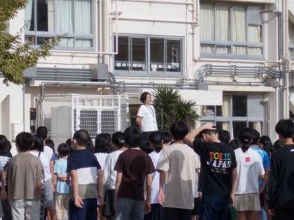 運動会実施時の隊形を考慮し、校庭にて西向きで実施しました。
