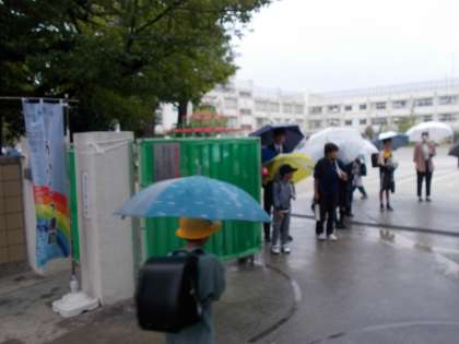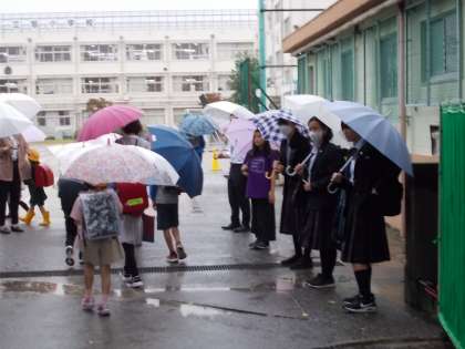 駒留中学校のみなさんも一緒に校門に立って挨拶を交わしております。