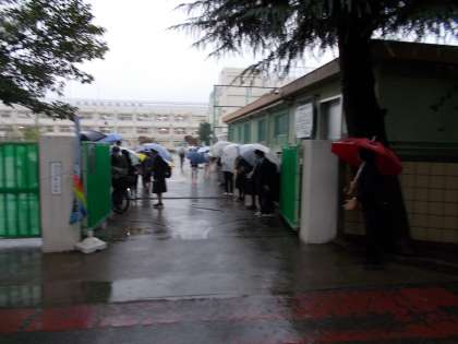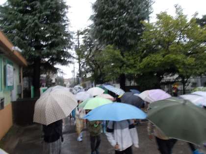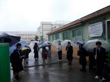 昨日に続き、本日も雨天の中 駒留中学校のみなさんとも一緒に挨拶を交わしています。
