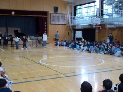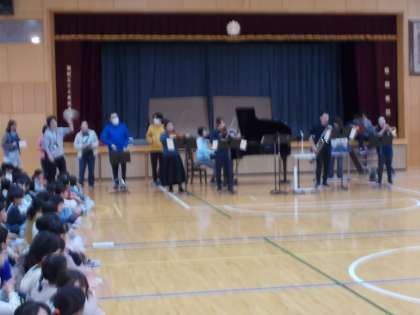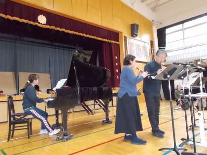 本日は旭小のスタッフによる重奏の鑑賞と合唱奏を行いました。