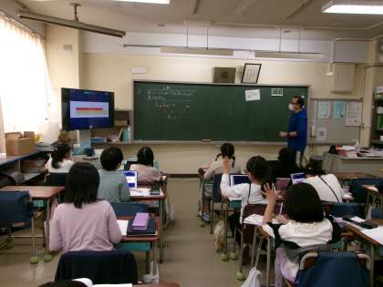 3年生の5校時(算数)の様子です。 上から1組教室、2組教室です。
