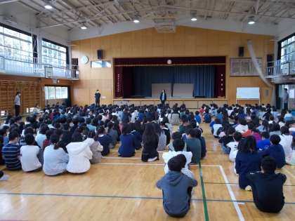 次に頑張る旭の子の表彰をし、最後に看護当番の教員より今週の生活目標「友達のよいところを見つけよう(先週から引き続き)」について指導を行いました。