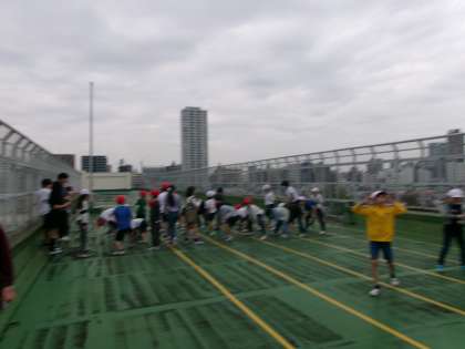 屋上では、ボール送りゲームとふえ鬼をしていました。