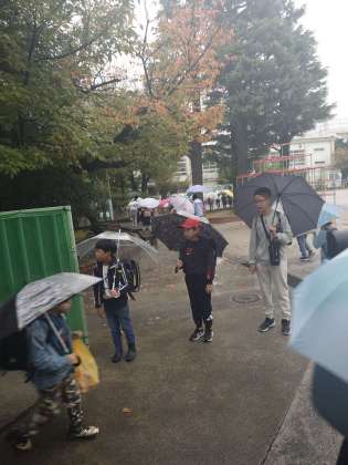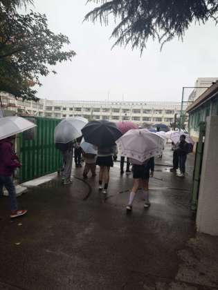 最終日、あいにくの雨です。雨の日は通常中止なのですが、集まってくれた代表委員の皆さんが、あいさつ運動をしてくれました。