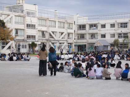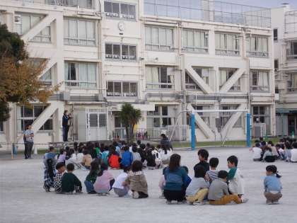 運動朝会終了後に、看護当番の教員より今週の生活目標「正しい言葉づかいをしよう。」について話をしました。