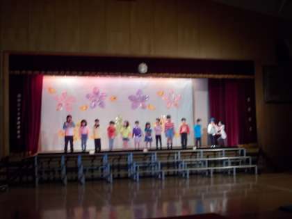 写真はひまらや学級、5年、2年の劇冒頭の様子です。