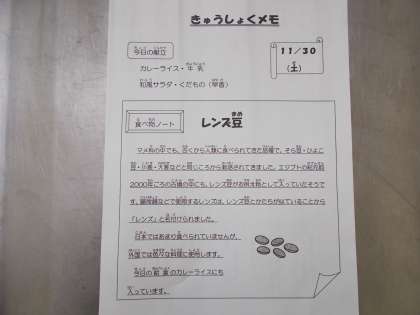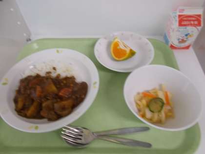 献立は、カレーライス、牛乳、和風サラダ、果物(早香)でした。