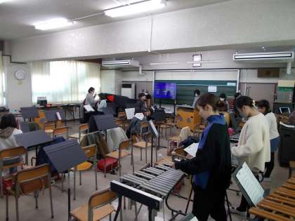 写真上から音楽、手芸、室内ゲームの各クラブの様子です。