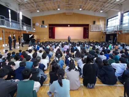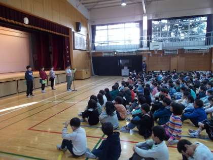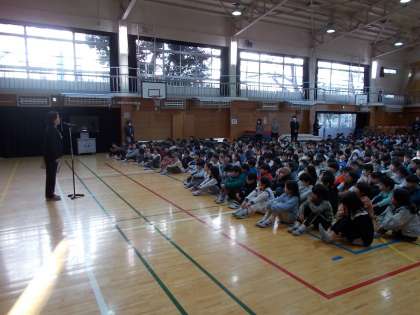 終業式(12月25日) 公開日 2024/12/25 更新日 2024/12/25 今日のできごと 校長からは、節目を迎え じっくり自分自身を振り返って、3学期のめあてに繋げてほしいということ、冬休みの間、挨拶をしっかりとすること、心も体も元気でいること、困ったことがあったら相談することを話しました。 児童代表の言葉は4年生が担当しました。