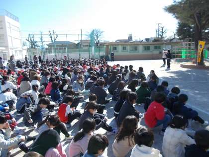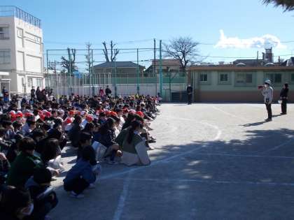 予告なし。地震発生後、給食室から出火という想定で中休み開始直後に実施しました。