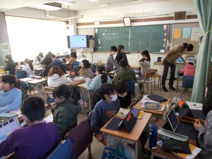 授業の様子(2月10日) 公開日 2025/02/10 更新日 2025/02/10 今日のできごと 4年1組の4校時(理科)の様子です。 単元名「すがたを変える水」 本時のねらい「水の性質についての現象に関わり、他者と関わりながら問題解決しようとしたり、水の性質について、適切な実験方法を考えたりする。」
