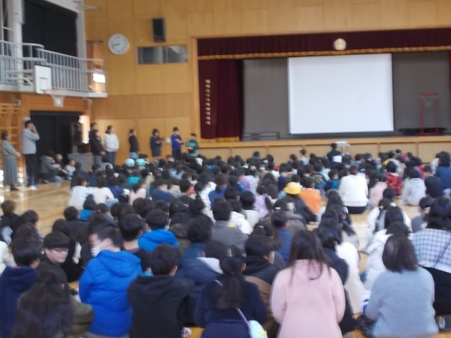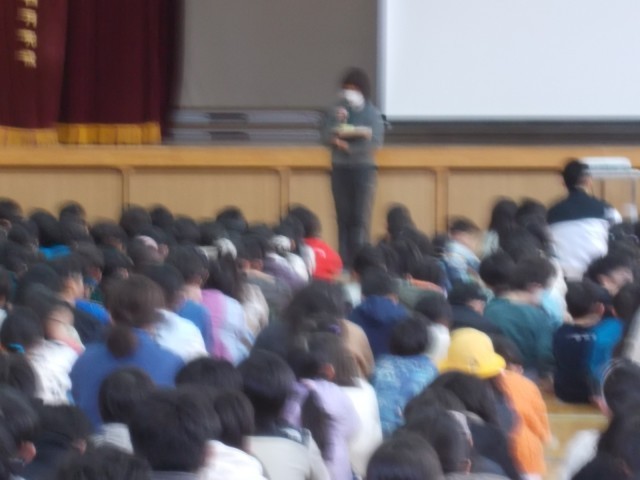 集会終了後、看護当番の教員より、今週の生活目標「時間を守って生活しよう。」について話をしました。
