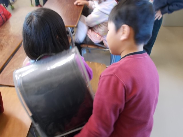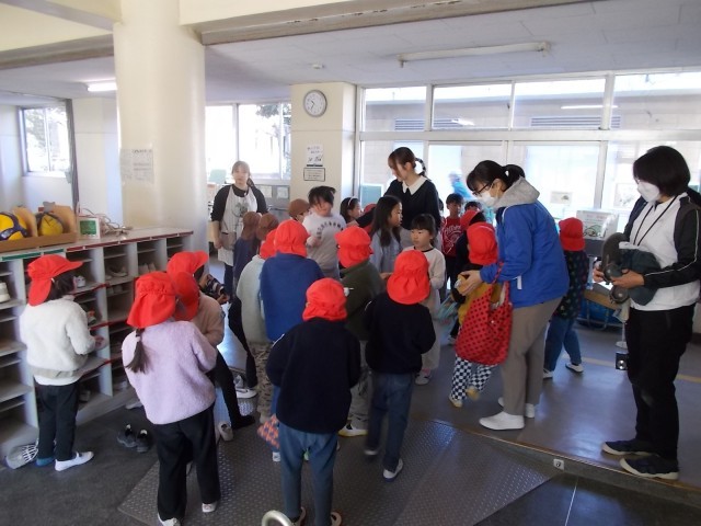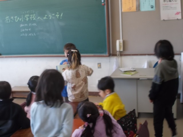 こども園・保育園交流(2月20日) 公開日 2025/02/20 更新日 2025/02/20 今日のできごと 3校時に1年生とこども園・保育園児が交流しました。(写真上…昇降口で園児を迎えている様子、写真中…「ランドセル体験」の様子、写真下…読み聞かせをしている様子)