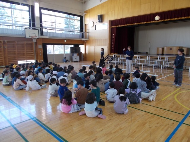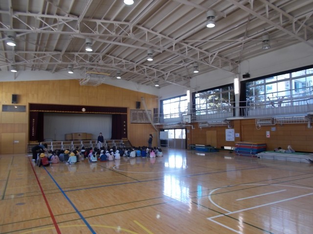 「6年生を送る会」の1年生の出し物の練習をしています。