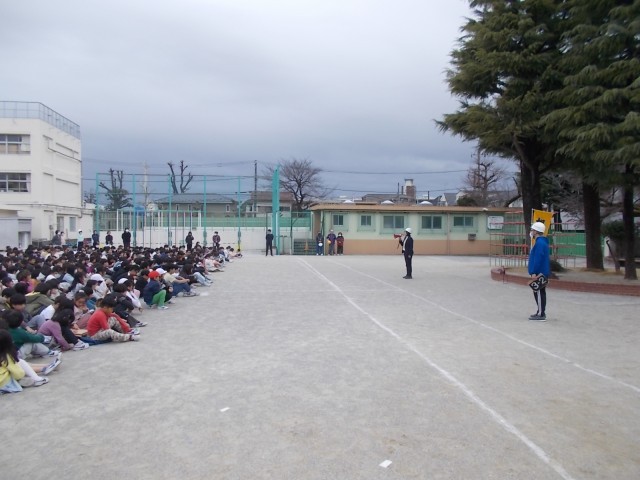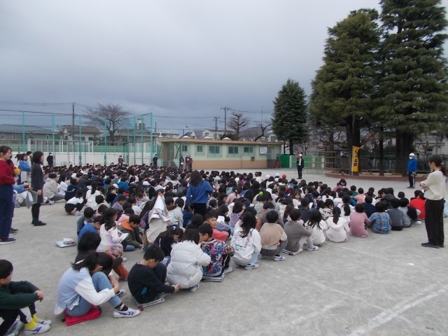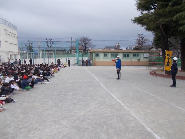 予告なし。地震発生後、理科室より出火という想定で実施しました。