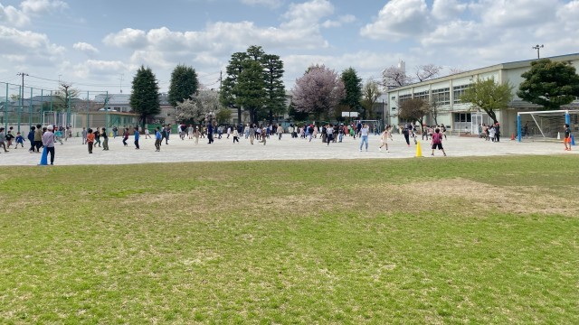 体育館の割り当ては、3年生です。体を思い切り動かして楽しんでいました。芝生の養生期間のルールをしっかり守って遊んでいました。