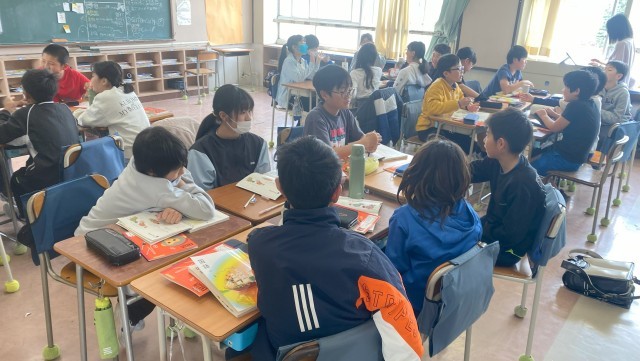 6年生 国語 公開日 2025/04/10 更新日 2025/04/10 今日のできごと 「つないでつないで一つのお話」の学習を進めています。グループの友達と一文ずつつないで、一つのお話を作っていきます。楽しいお話を思いつき、盛り上がっていました。