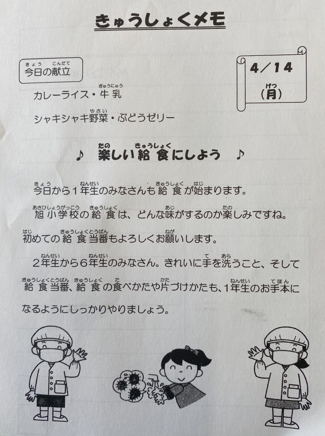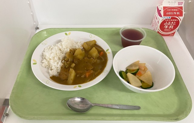 【今日の献立】カレーライス・牛乳・シャキシャキ野菜・ぶどうゼリー