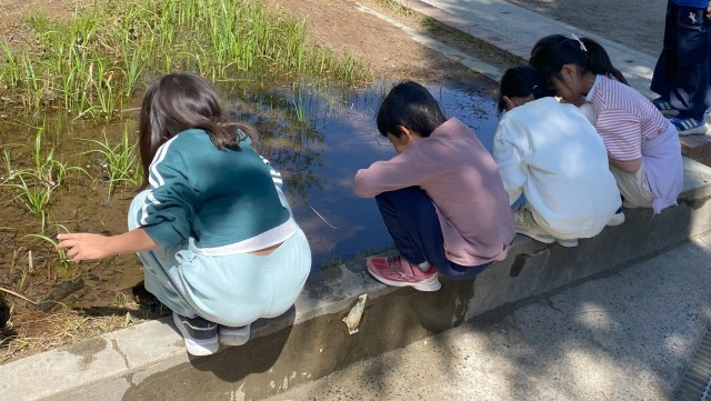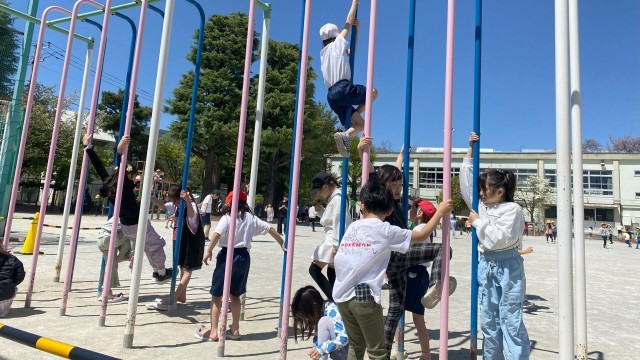 休み時間 公開日 2025/04/16 更新日 2025/04/16 今日のできごと 子どもたちは様々な場所で遊びを楽しんでいます。1年生にはジャングルジムが人気です。ビオトープには、オタマジャクシがいっぱい! +2