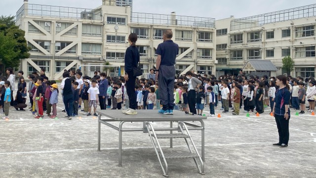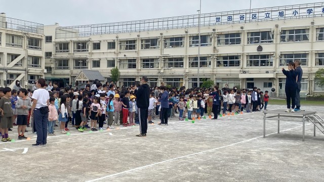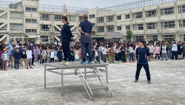 今年度第1回目も体育朝会を行いました。整列の仕方、休め、右向け右、回れ右など基本的な集団行動について学びました。