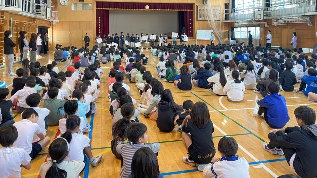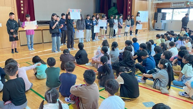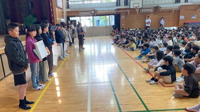 各委員会の委員長、副委員長の児童が、委員会の活動内容や全校児童へのお願いやメッセージをお話しました。