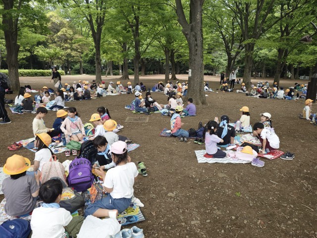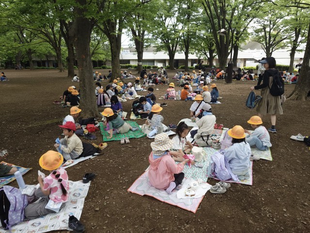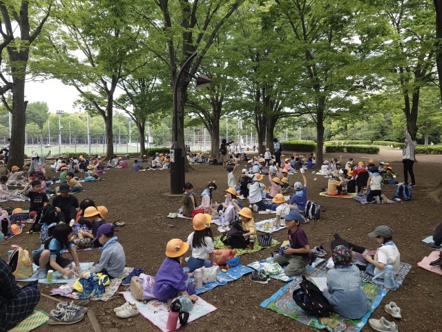 お弁当の時間です。11時過ぎですが、すっかりお腹を空かせた子どもたち。もりもり食べています。
