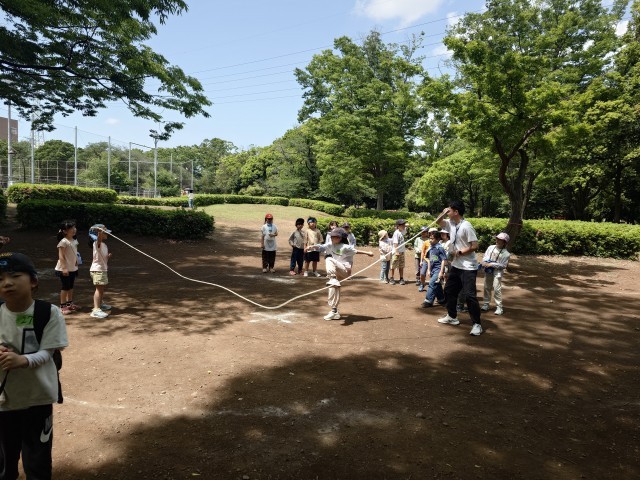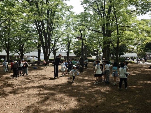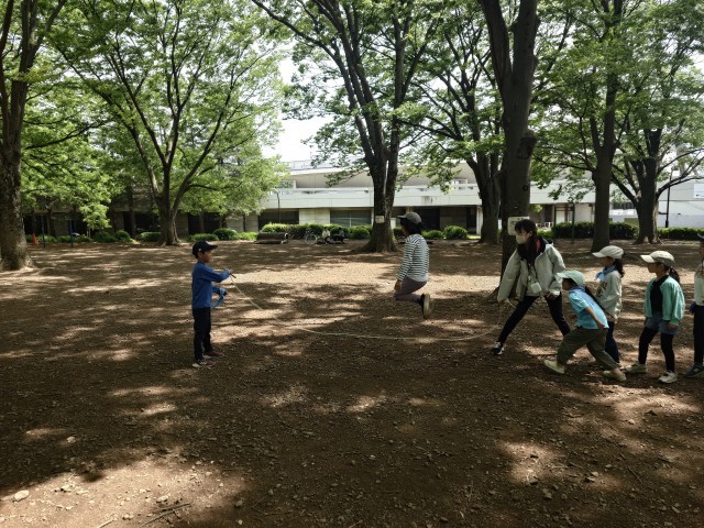 そのあと、自由広場でクラスごとに、長縄をしました。