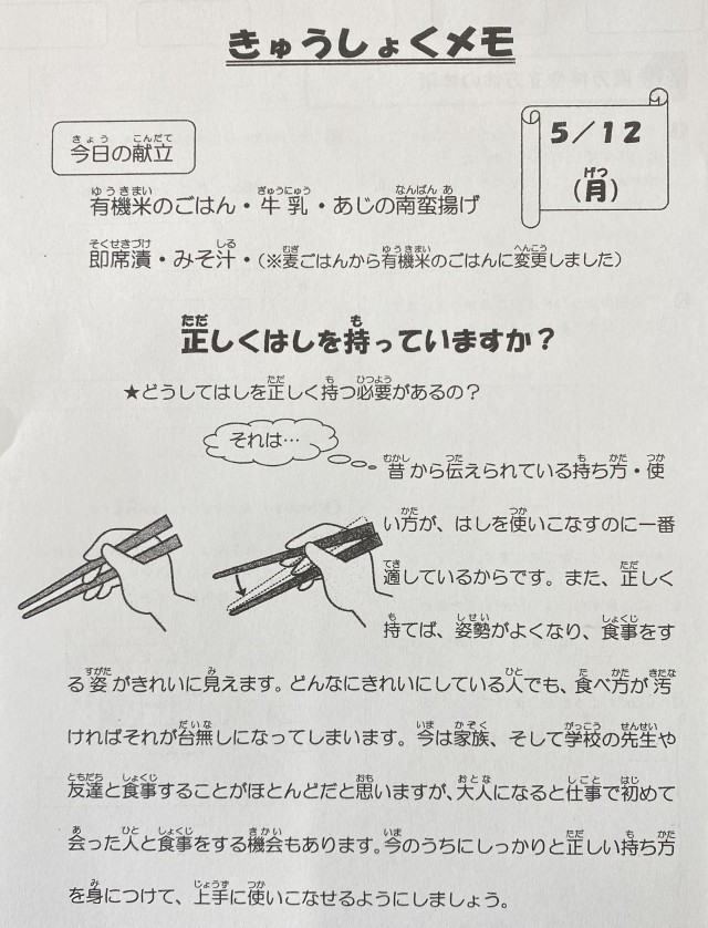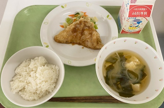 【今日の献立】有機米のごはん・牛乳・あじの南蛮揚げ・即席漬・みそ汁