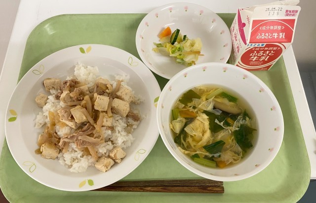 【本日の献立】豚丼・牛乳・ひとしお野菜・かきたま汁