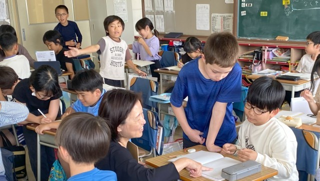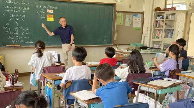 4年生 算数 公開日 2025/05/16 更新日 2025/05/16 今日のできごと 「わり算の仕方を考えよう」について学習を進めています。前時の学習を振り返り、73÷3の計算をひっ算でする方法を学びました。教え合いながら学習していました。