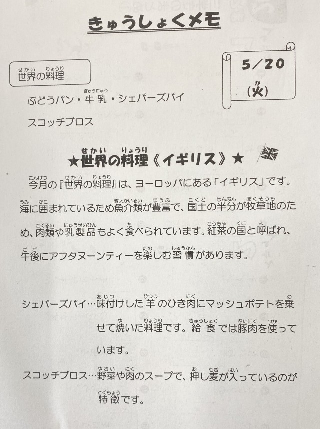 【今日の献立】ぶどうパン・牛乳・シェパーズパイ・スコッチブロス