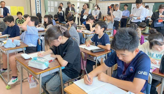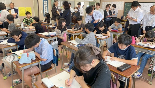 校内研究 研究授業 6年生 公開日 2025/06/04 更新日 2025/06/04 今日のできごと 今年度の校内研究は、研究主題を「自ら課題をもち、主体的に学ぶ児童の育成~児童相互の関わり合いを通して~」として、研究を進めています。今回は、今年度2回目の研究授業です。算数:「分数÷分数の計算の仕方を考える」授業を行いました。授業後は、研究協議会でより良い授業づくりについて意見交換をしたり、講師の先生からご指導いただいたりしました。