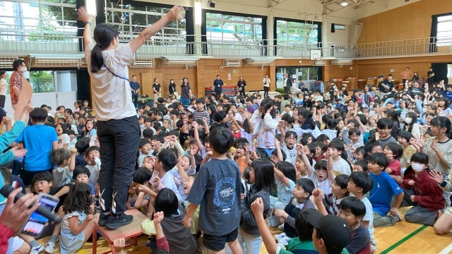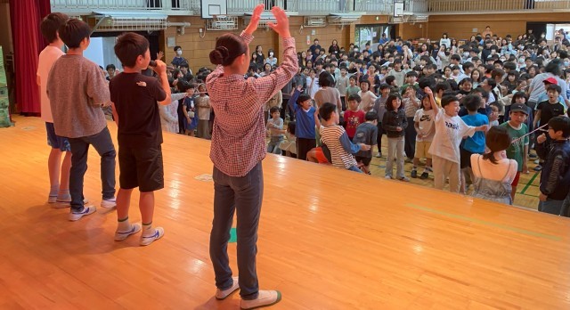 先生あてクイズにチャレンジしました。事前に集会委員の児童が先生方にインタビューした内容を発表していきました。正解した子どもたちは大喜びでした。